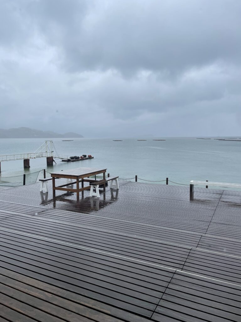 川も大分増水し、海の色も濁るくらいでした。