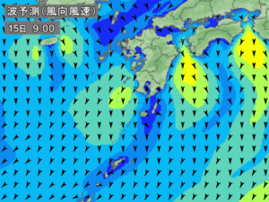 明日、5月31日金曜日の天候は曇り~晴れ 南~北の風 波高1m