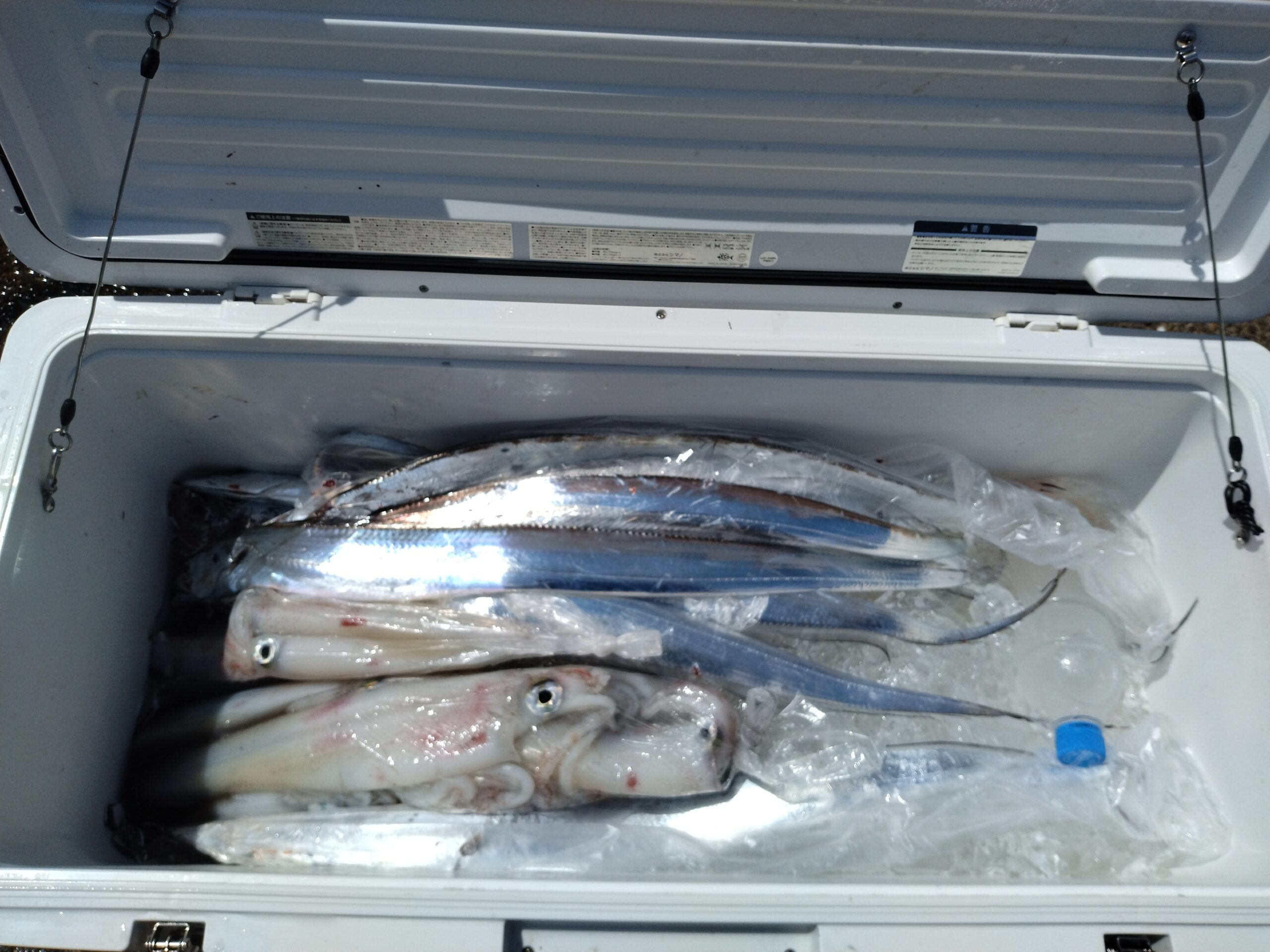 8月24日(日) 2025.08.24 真夜中の出航より SF-31号の皆様、イカに太刀魚までお見事🎣 明日、月曜日の天候は晴れ時々曇り夕方雨 南~北の風 波高1m8月25日 オーナー様オープン AM9:00