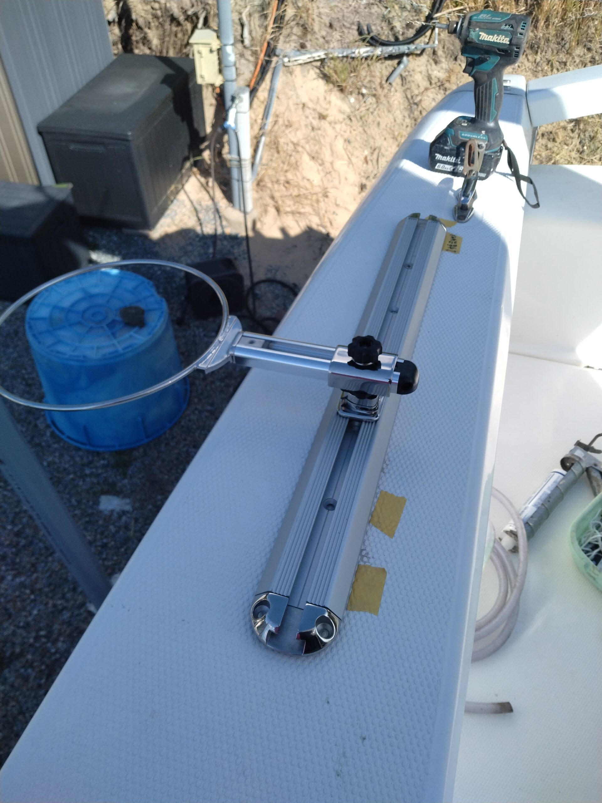 10/28 (火) 2025.10.28 風が冷たい晴れの1日 天気はいいのですが、気温を低く感じる風が 吹き続けています。 釣り仕様への艤装中1コマ 10/29の天気予報は 晴れ 北東の風やや強く 波 1,5m 明日 オーナー様オープン AM9:00