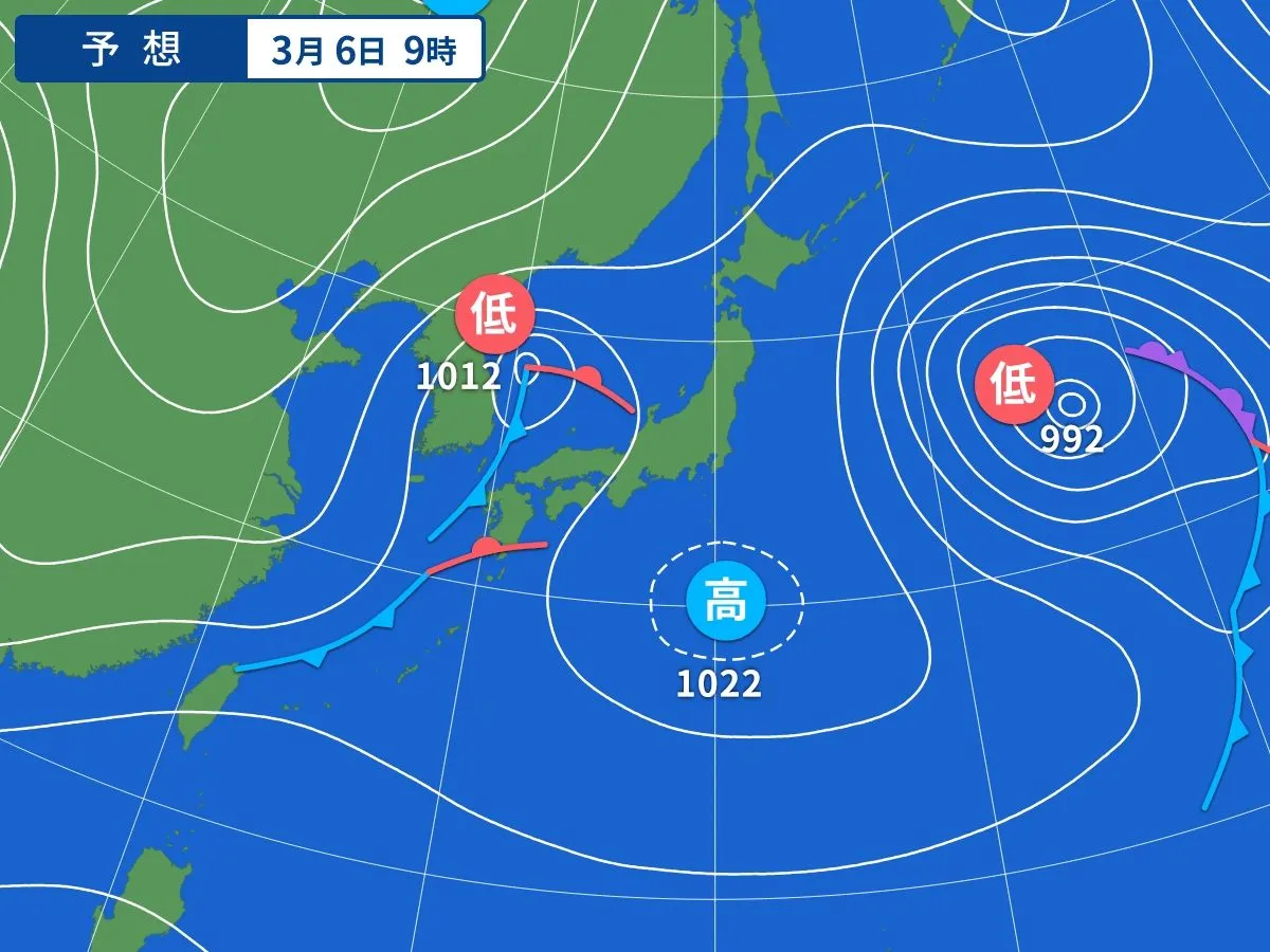 南東~西の風 海上では南の風やや強く 波高1.5~2m
